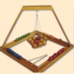 Jeu du Roll up: Écarter les 2 tiges et faire monter la boule au plus loin pour obtenir un maximum de points. Jeu d'adresse sympathique pour tous les âges. Disponible dans le lot de 5 jeu en bois géants